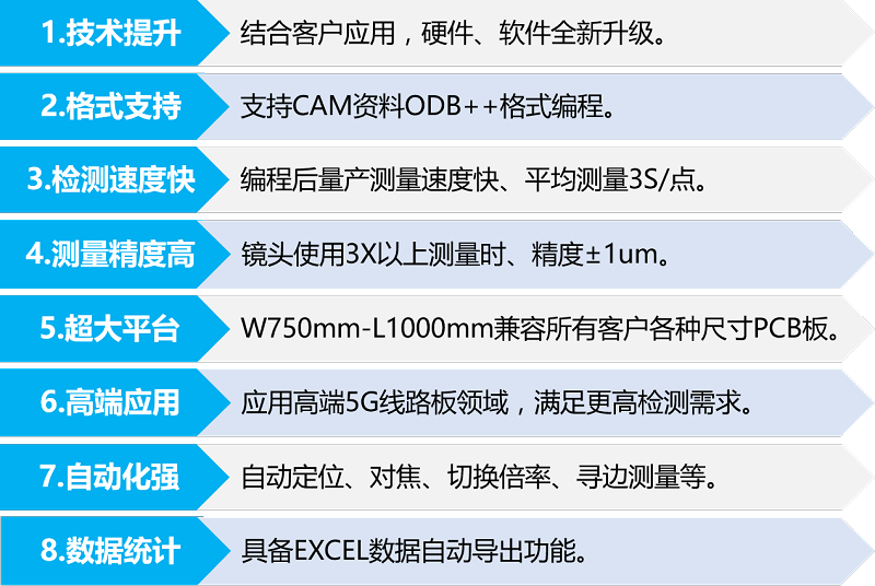 通過影像成像系統(tǒng)及光源從上表面垂直于被測板,呈顯影像(相機實時拍圖)感測,并將圖像傳送至電腦測量軟件,通過軟件測量工具分析圖像的“線寬/線距/線寬上下幅/圓/金手指線寬等”標準公差值對比,從而判斷被測板上的測量值OK或NG。
