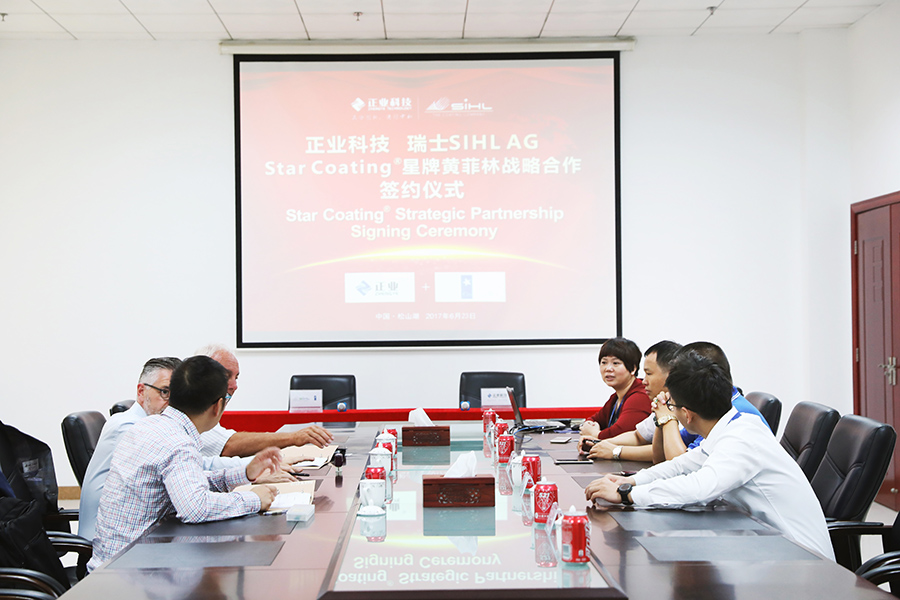 在簽約儀式上,雙方進行了親切友好的交談。正業科技副總裁徐地明表示:“SIHL AG是我司的重要合作伙伴。面對電子信息行業的快速發展,未來的競爭必將是產品質量的競爭,借助SIHL AG商業以及技術上的支持,我們將繼續把項目做大做強,擴展我們在這場未來戰役中的領先地位。”