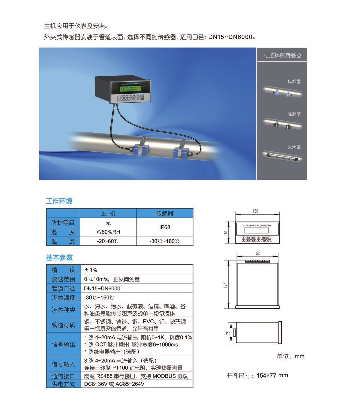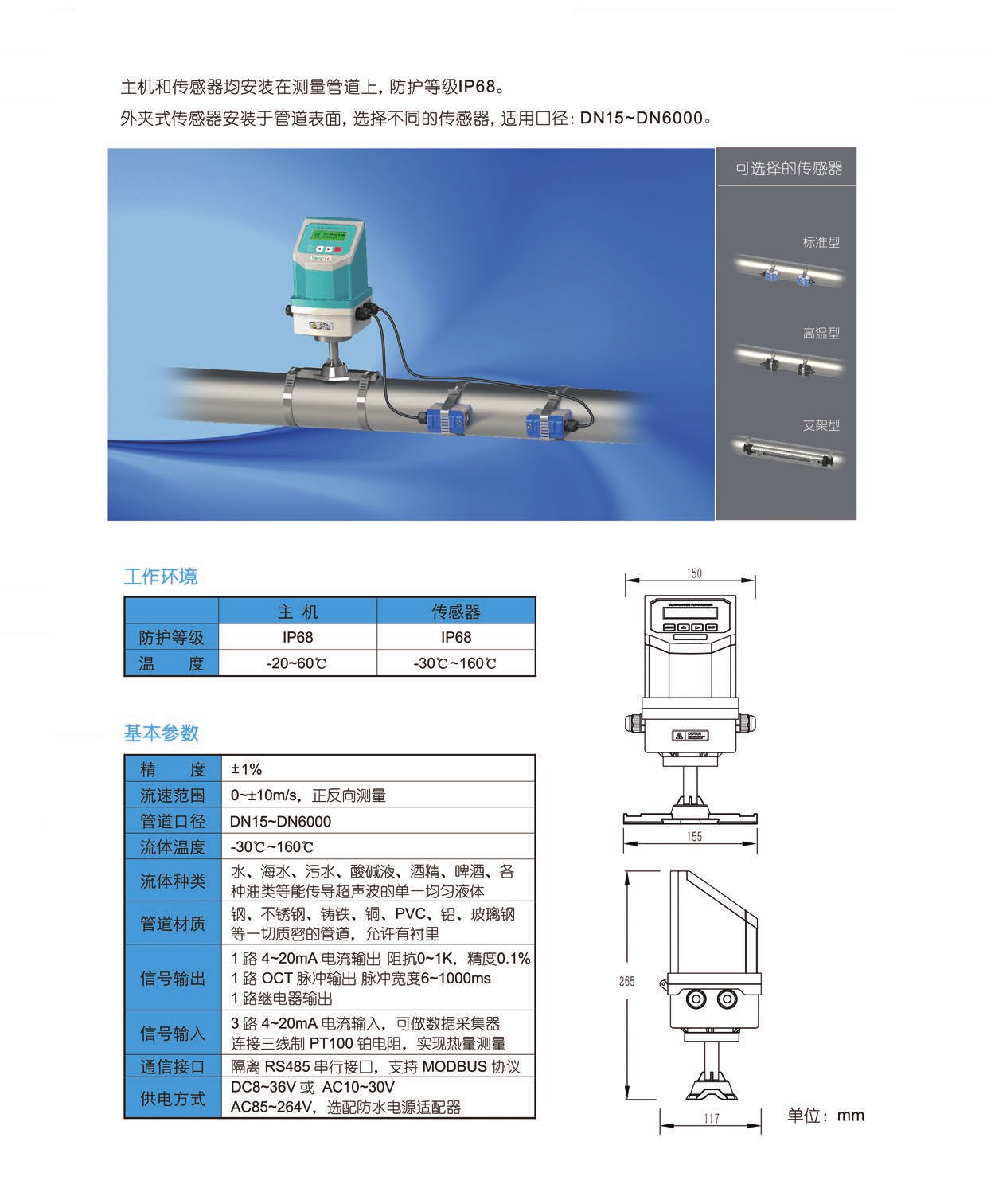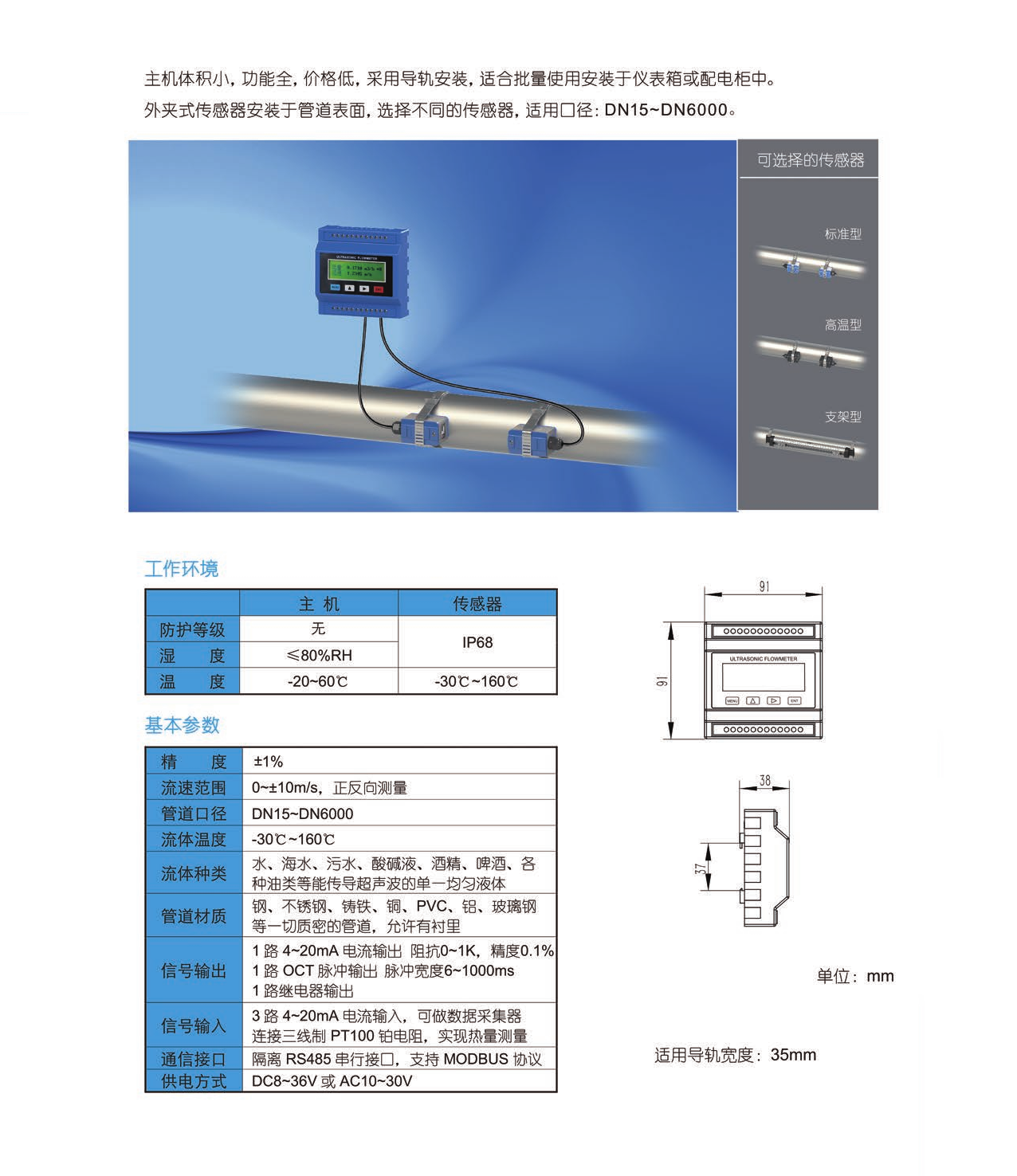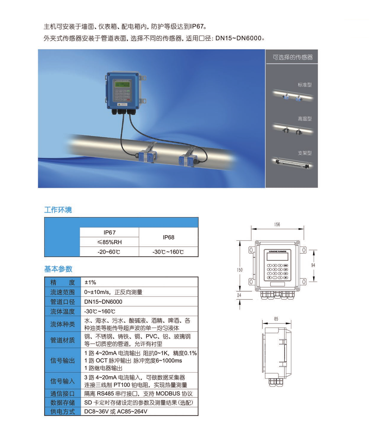 1、安裝形式靈活,傳感器可采用管段、插入或外夾形式安裝。